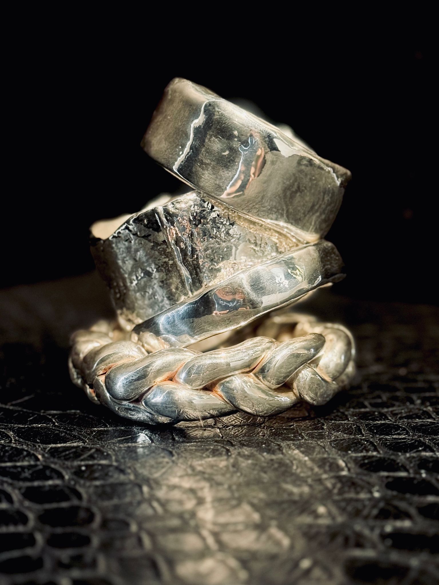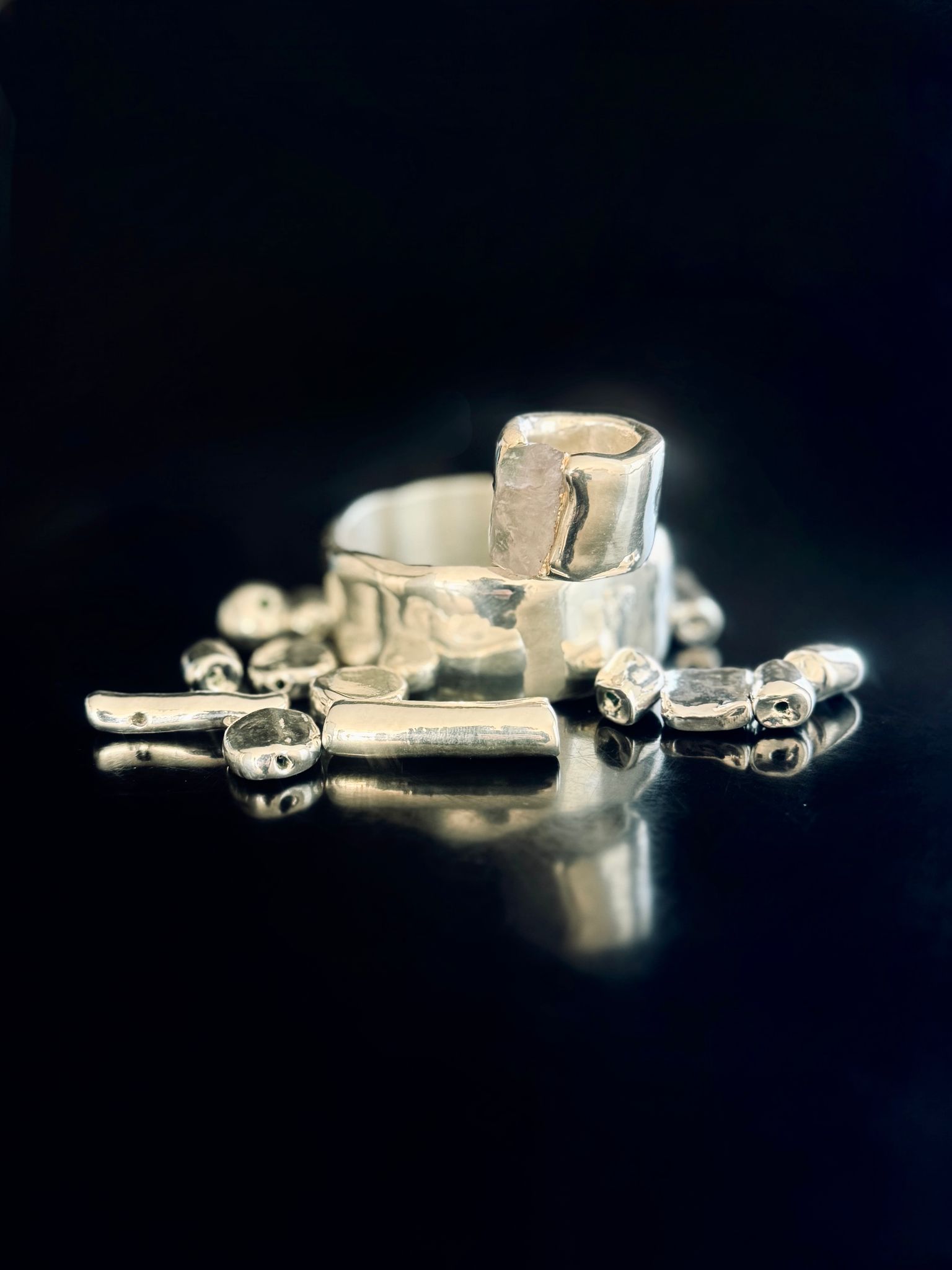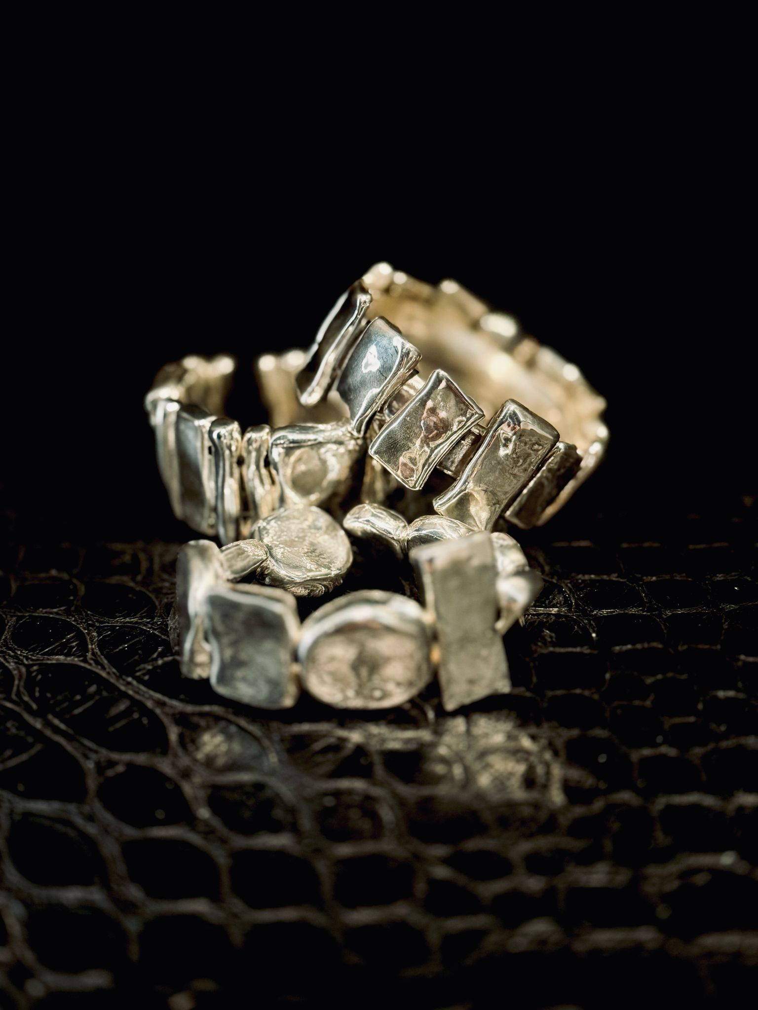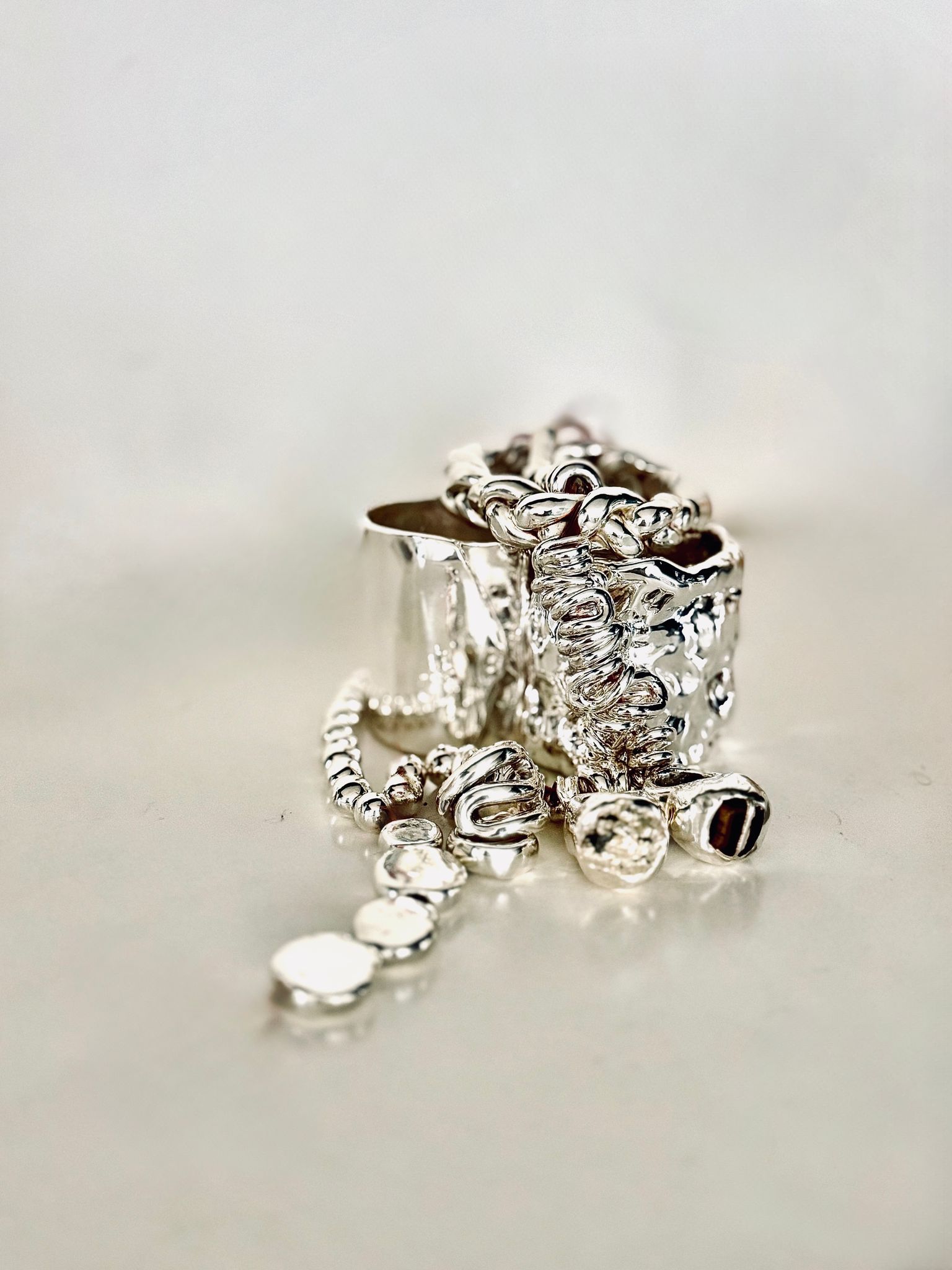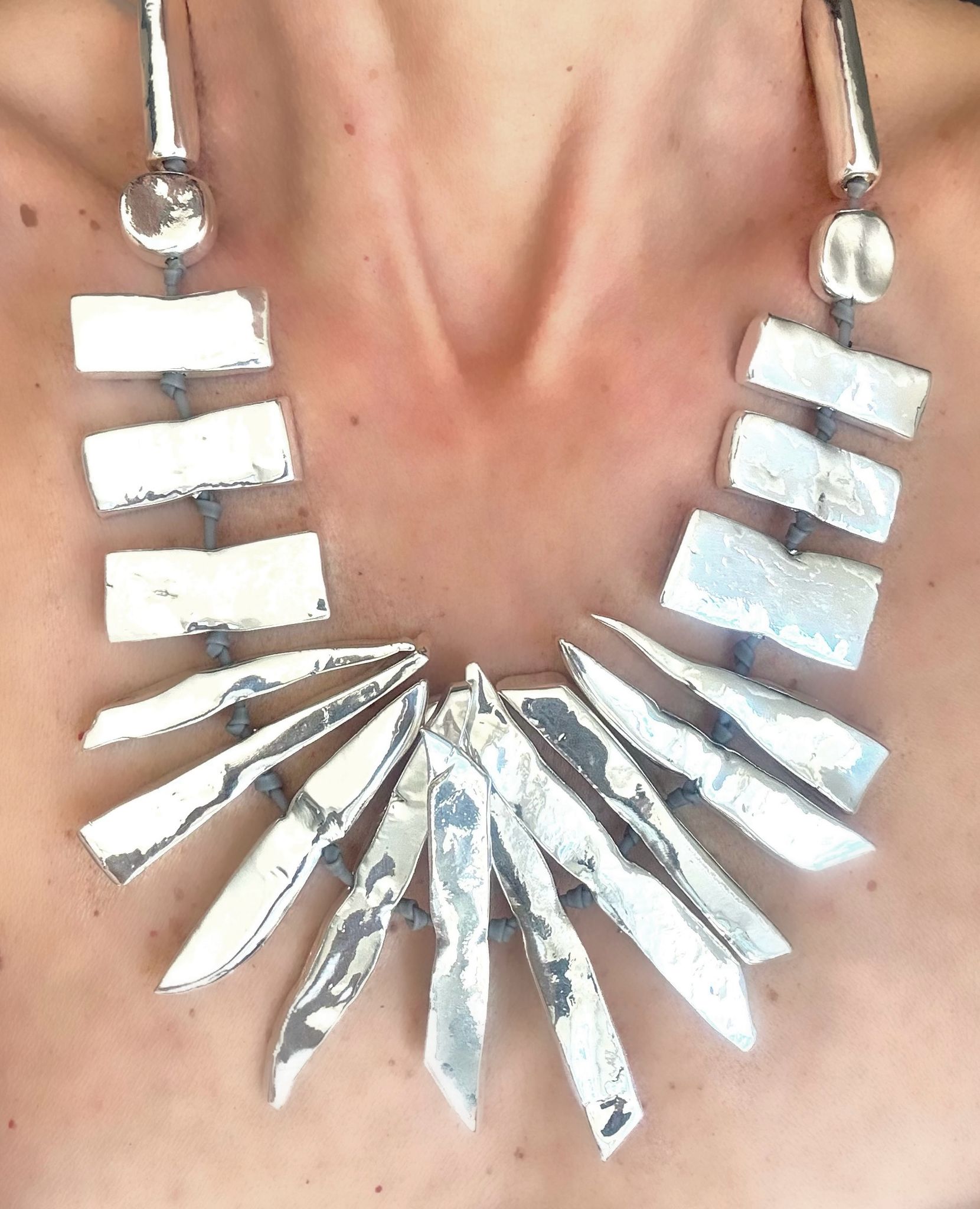 Indossare AnimaBrillante è abbracciare la luce del sud della Puglia, attraversando le ombre dei sui vicoli antichI e il respiro del mare, dove la linfa creativa di sfumature d’argento si fonde con l’anima.
